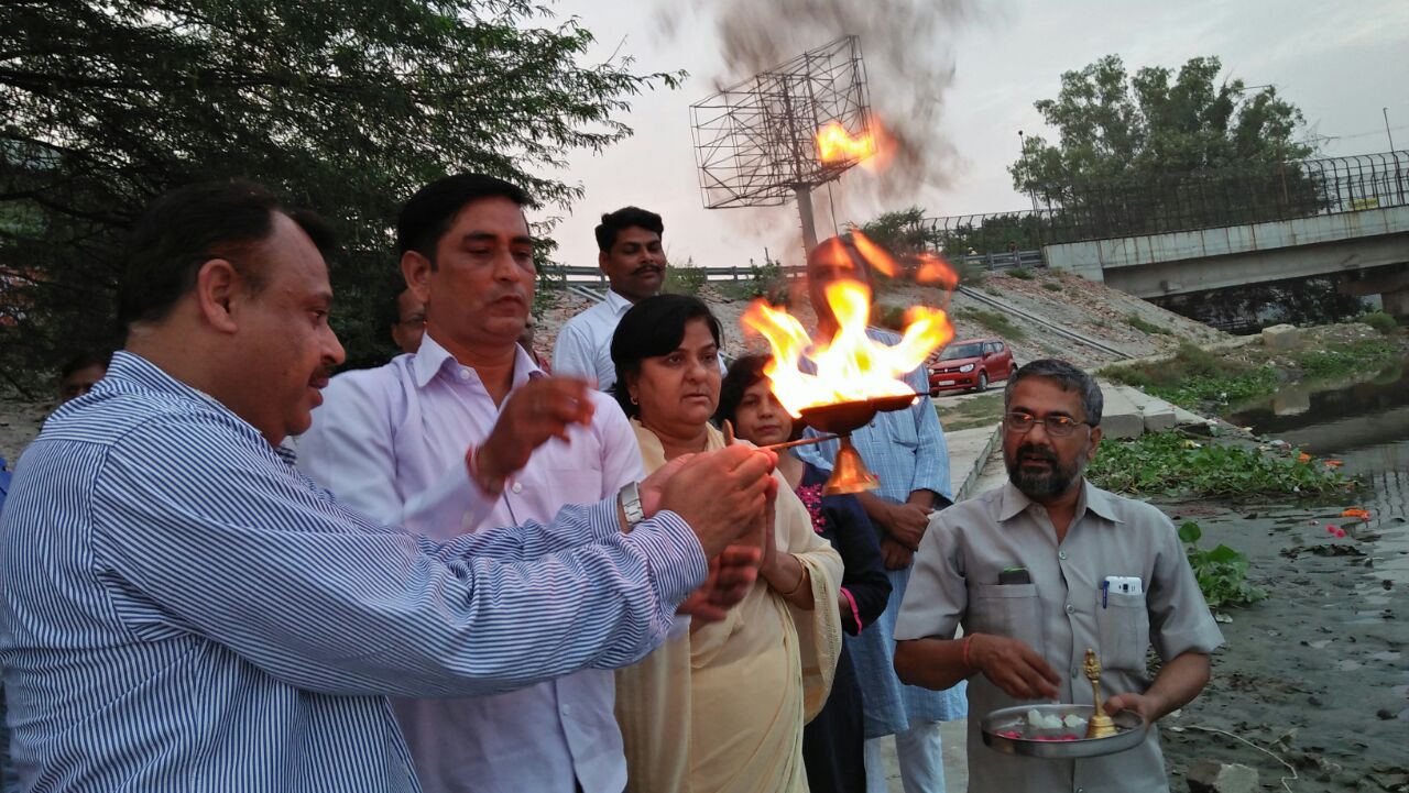 गाज़ियाबाद|पहला कदम समाज सेवा समिति द्वारा पर्यावरण की सुरक्षा व नदियों को प्रदुषण से बचाने हेतु चलाये जा रहे जनजागरूकता अभियान प्रत्येक रविवार हिंडन आरती के तहत हिंडन की 25 वीं आरती की गई|आरती की अगुवाई धर्मयात्रा महासंघ के महामंत्री राकेश गुप्ता (पेठे वाले) द्वारा की गई|आरती में रमाशंकर वत्स के अलावा अन्य गणमान्य लोग उपस्थित थे|