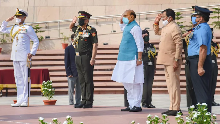 नेशनल वॉर मेमोरियल पर शहीदों को श्रद्धांजलि देने के बाद राजनाथ सिंह ने विजिटर बुक में संदेश भी लिखा. लिए तीनों सेना प्रमुख भी पहुंचे. नौसेना प्रमुख एडमिरल करमबीर सिंह, थल सेना प्रमुख जनरल एमएम नरवणे और वायुसेना प्रमुख भदौरिया ने भी शहीद सैनिकों को श्रद्धांजलि दी.
