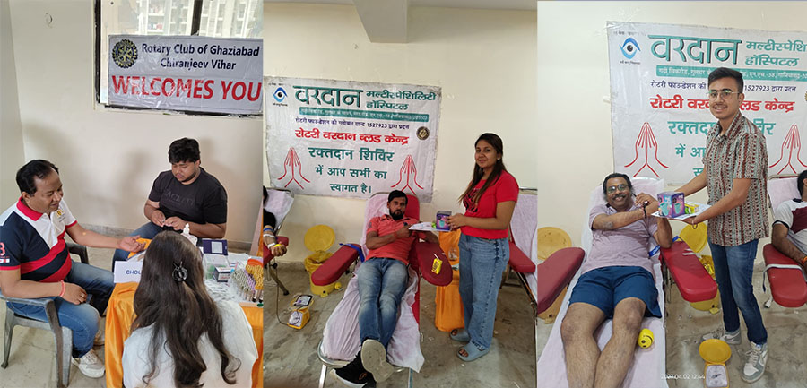 गाजियाबाद । रोटरी क्लब आफ चिरंजीव विहार द्वारा राज नगर एक्सटेंशन स्थित देविका स्काइपर्स सोसायटी में रक्त दान शिविर एवम् मुफ्त स्वास्थ्य जांच शिविर का आयोजन किया गया । शिविर का आयोजन रोटरी क्लब आफ चिरंजीव विहार द्वारा वहां के कुछ निवासियों के सहयोग से किया गया। कार्य क्रम के दौरान 25 यूनिट रक्त एकत्रित कर रोटरी क्लब आफ चिरंजीव विहार ने इस कार्यकाल का 87 यूनिट का लक्ष्य पूरा किया। रक्त दान में सहयोग वरदान अस्पताल ने किया।