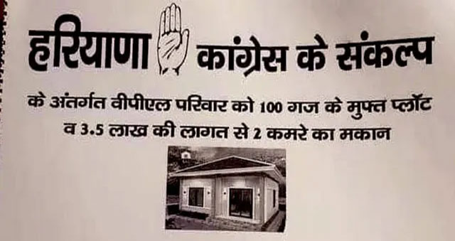 चंडीगढ़। कांग्रेस पार्टी चुनाव के समय झूठा वादा करके लोगों को ठगने का कोई मौका नहीं छोड़ती है। लोग कांग्रेस के फर्जी वादे के झांसे में ठगे जाते हैं। इसी साल लोकसभा चुनाव से पहले कांग्रेस ने लोगों के बीच गारंटी कार्ड बांटे थे। कांग्रेस ने हर गरीब परिवार को हर साल एक लाख रुपये देने का वादा किया था। उस समय कांग्रेस के पूर्व अध्यक्ष राहुल गांधी के खटाखट-खटाखट रुपये आने वाला बयान काफी वायरल भी हुआ था। चुनाव के बाद देश भर में कांग्रेस दफ्तर के सामने गारंटी कार्ड जमा कराने वाले लोगों की भीड़ उमड़ पड़ी थी। लेकिन बाद में उन्हें पता चला कि कांग्रेस ने उनके साथ खेल किया है। उन्हें झूठे वादे का लॉलीपॉप थमाकर उनके वोट ले लिए गए थे। लोकसभा चुनाव में ये चाल कामयाब रहने पर कांग्रेस अब इसे हरियाणा चुमाव में भी आजमा रही है। हरियाणा में भी कांग्रेस की ठगी वाली स्कीम चालू हो गई है। कांग्रेस के कार्यकर्ता मतदाताओं से वोट के बदले 100 गज के प्लॉट और 2 कमरे का मकान देने के फॉर्म भरवा रहे हैं। लेकिन लोकसभा चुनाव के समय झांसे में आए लोग इस बार जागरूक हो गए हैं। सोशल मीडिया पर लोग कांग्रेस के इस वादे का फॉर्म शेयर कर रहे हैं। लोग कांग्रेस की इस चाल पर थू-थू कर रहे हैं। आप भी देखिए लोग इस फॉर्म को शेयर कर क्या कह रहे हैं…