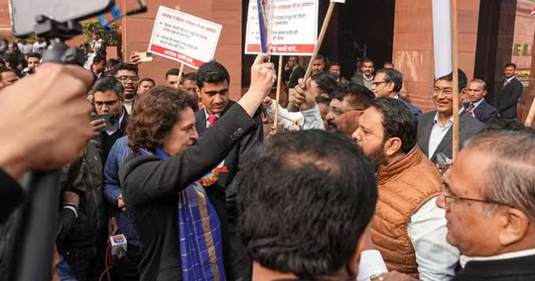 मामले में जब लोकसभा में विपक्ष के नेता से सवाल किया गया तो उन्होंने कहा कि यह आपके कैमरे में हो सकता है। मैं संसद के प्रवेश द्वार से अंदर जाने की कोशिश कर रहा था, भाजपा सांसद मुझे रोकने, धक्का देने और धमकाने की कोशिश कर रहे थे। इसलिए यह हुआ। हां, ऐसा हुआ है। मल्लिकार्जुन खरगे को धक्का दिया गया। प्रियंका गांधी को भी धक्का दिया गया। हालांकि, धक्का-मुक्की से हम प्रभावित नहीं हुए। यह प्रवेश द्वार है और हमें अंदर जाने का अधिकार है। भाजपा सांसद हमें अंदर जाने से रोकने की कोशिश कर रहे थे। मुख्य मुद्दा यह है कि वे संविधान पर हमला कर रहे हैं और आंबेडकर की स्मृति का अपमान कर रहे हैं। कांग्रेस ने आरोपों को खारिज करते हुए दावा किया कि यह सब गृह मंत्री अमित शाह को बचाने के लिए रची गई साजिश है। पार्टी ने आरोप लगाया कि भाजपा सांसदों ने गुंडागर्दी की और राज्यसभा में नेता प्रतिपक्ष मल्लिकार्जुन खरगे को धक्का मारकर नीचे गिरा दिया। भाजपा सांसदों ने राहुल के साथ भी दुर्व्यवहार किया। प्रियंका गांधी ने कहा कि राहुल आंबेडकर की तस्वीर लेकर और ‘जय भीम’ के नारे लगाते हुए संसद में जा रहे थे। उन्हें संसद में जाने से किसने रोका? हम कई दिनों से विरोध प्रदर्शन कर रहे थे, लेकिन किसी को नहीं रोका।