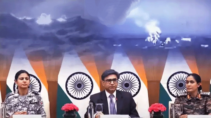 नई दिल्ली। भारत की सेना पाकिस्तान की कायराना हरकतों का सटीक और सधा हुआ जवाब दे रही है। सीमा पार से लगातार चौथे दिन रात के अंधेरे में हमला जारी है। भारत की तरफ से पाकिस्तानी आक्रामकता का बढ़ चढ़कर जवाब दिया जा रहा है। उत्तरी और पश्चिमी सीमा पर एयर अटैक के जवाब में भारत ने पाकिस्तान के अहम ठिकानों को चुन-चुनकर निशाना बना गया। इनमें ड्रोन और मिसाइल हमला करने वाले एयरबेस भी शामिल हैं। 10 मई को लगातार चौथे दिन प्रेस वार्ता में विदेश सचिव विक्रम मिसरी, कर्नल सोफिया कुरैशी और विंग कमांडर व्योमिका सिंह ने ऑपरेशन सिंदूर की जानकारी दी।