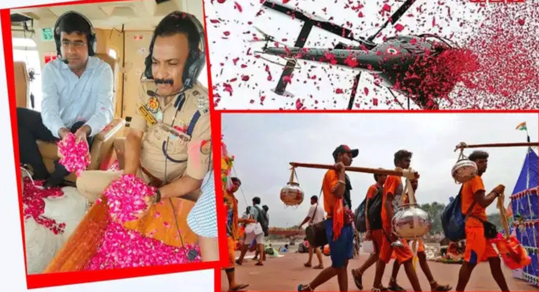 डीएम दीपक मीणा तथा एडिशनल सीपी आलोक प्रियदर्शी ने करीब 200 किलोग्राम फूल लेकर आसमान से नीचे बरसाया। कांवड़ियों पर पुष्प वर्षा को लेकर प्रशासन की तरफ से समय-सारिणी जारी की गई। इसके अनुसार 21 जुलाई 2025 को सुबह 9 बजे से 12 बजे के बीच में कांवड़ यात्रा के दौरान गाजियाबाद, हापुड़, बुलंदशहर में विभिन्न यात्रा मार्ग पर हेलिकॉप्टर से फूल बरसाए गए।