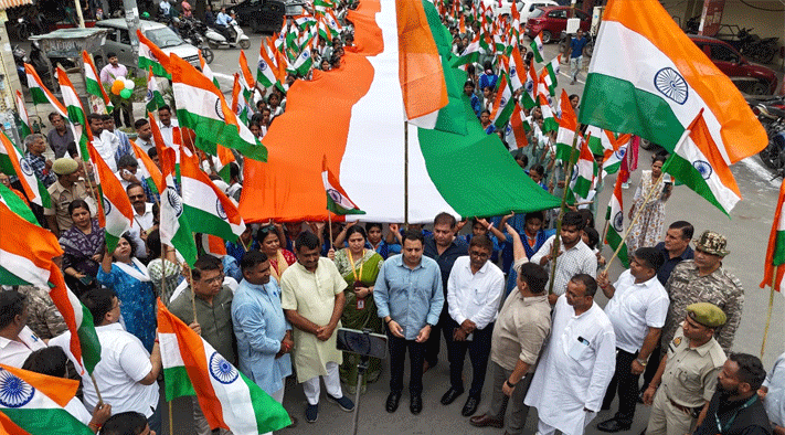 तिरंगा यात्रा की शुरुआत नगर निगम मुख्यालय से हुई, जो नवयुग मार्केट स्थित शहीद पथ तक निकाली गई। इस दौरान निगम अधिकारी, सभी पार्षदगण, एमबी गर्ल्स स्कूल की छात्राएं, सामाजिक कार्यकर्ता और बड़ी संख्या में शहरवासी शामिल हुए। सभी ने हाथों में तिरंगा लेकर देशभक्ति के नारे लगाए और देशभक्ति गीतों के साथ वातावरण को राष्ट्रमय बना दिया।