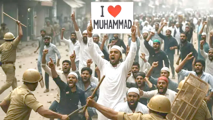 नई दिल्ली। “आई लव मोहम्मद” से जुड़े विवाद को लेकर देशभर में इन दिनों जगह-जगह पर इस्लामी कट्टरपंथियों की उन्मादी भीड़ हिंसक प्रदर्शन कर रही है। उत्तर प्रदेश, उत्तराखंड और गुजरात समेत देश के कई राज्यों में पिछले दिनों इससे जुड़े प्रदर्शनों के दौरान हिंसा की गई है। इसकी शुरुआत कानपुर में दर्ज की गई एक FIR से हुई है।