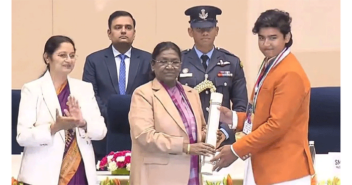 राष्ट्रपति द्रौपदी मुर्मू ने युवा क्रिकेटर वैभव सूर्यवंशी को प्रधानमंत्री राष्ट्रीय बाल पुरस्कार से सम्मानित किया। क्रिकेट में शानदार योगदान के लिए उन्हें इस पुरस्कार से सम्मानित किया गया। पीएम मोदी भी वैभव की तारीफ कर चुके हैं। अपने संबोधन में कहा राष्ट्रपति द्रौपदी मुर्मू ने कहा कि कि वैभव ने कड़ी प्रतिस्पर्धा और प्रतिभाओं से भरे क्रिकेट जगत में अपनी अलग पहचान बनाई है। यह सिर्फ शुरुआत है।