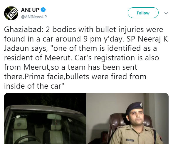 गाजियाबाद के एसपी नीरज कुमार जादौन ने बताया कि मृतकों में एक युवक की पहचान कर ली गई है। मृतक की मेरठ का रहने वाला था। कार भी मेरठ में ही रजिस्टर्ड है। फिलहाल पुलिस की एक टीम को मेरठ भेजा गया है। मामले की जांच की जा रही है।