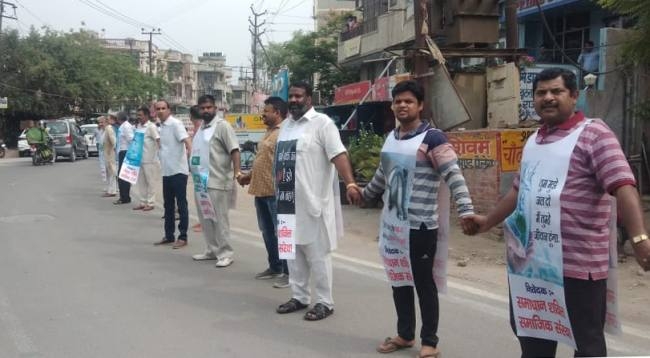 साहिबाबाद : समाधान सामाजिक संस्था की ओर से रविवार को वार्ड – 78 शालीमार गार्डन से जल संरक्षण को लेकर मुहिम शुरू की गई है। लोगों को जागरूक करने के लिए करीब पांच सौ मीटर लंबी मानव शृंखला बनाई गई।