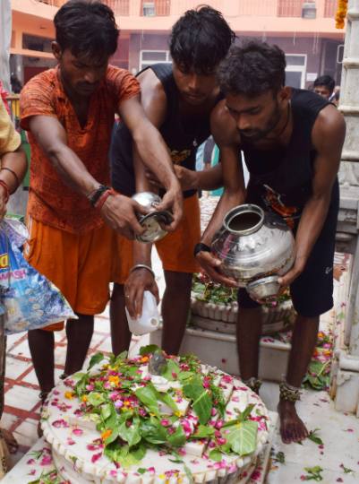 गाजियाबाद : हरिद्वार या अन्य पवित्र स्थानों से जल लाए लाखों कांवड़ियों ने आज सुबह भी हाजिरी का जल भोलेनाथ को अर्पित किया। दोपहर 11 बजे से चतुदर्शी का जल चढ़ना शुरू होगा। वहीं सावन का दूसरा सोमवार होने के चलते आम श्रद्धालुओं की भी शिव मंदिरों में भारी भीड़ जुटी। सोमवार को शिवालयों में हाजिरी का जल चढ़ाया गया।