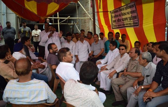 जीडीए की सीलिंग के विरोध में बाजार बंद, व्यापारियों ने दिया धरना