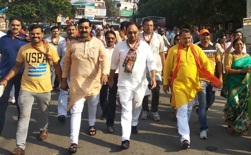 गांधी जयंती के अवसर पर गांधी संकल्प पदयात्रा का शुभारंभ जनरल वी के सिंह ने साथ चलते हुए रास्ते मे आने वाले प्लास्टिक के कचरे को उठाते हुए किया। पदयात्रा पुराने बस अड्डे से होते हुए नवयुग मार्किट शहीद पथ से निकलकर दुर्गा भाभी चौक पहुंची। यात्रा के दौरान ही नेतागण व भाजपाइयों ने देश के अमर शहीदों व दुर्गा भाभी की प्रतिमा को शीश नमन कर श्रद्धांजलि दी। पदयात्रा अपने रुट पर बढ़ते हुए चौपला मार्किट मेन रोड से होते हुए चौपला के हनुमान मंदिर, महाराज अग्रसेन की मूर्ति के पास से निकली। जहां अध्यक्ष मानसिंह गोस्वामी ने शीश नमन कर आशीर्वाद अर्जित करते हुए अनाज मंडी से निकलते हुए घंटाघर स्थित शहीद भगतसिंह की प्रतिमा पर माल्यार्पण के साथ पदयात्रा का समापन हुआ।