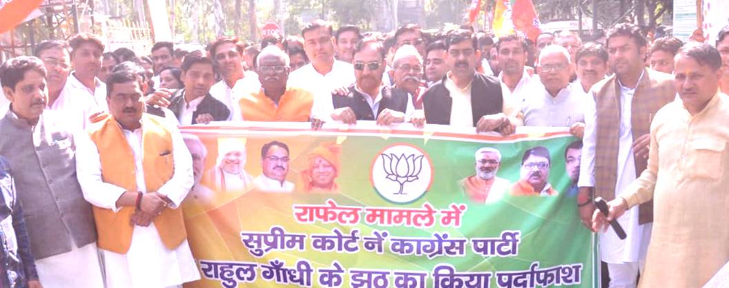 इस दौरान भाजपाईयों ने कहा कि राहुल गांधी को पूरे देश के सामने मांफी होगी। यदि वह मांफी नही मांगते है तो उनकी संसद से सदस्यता रद्द करने की मांग बीजेपी कार्यकर्ताओं ने की। प्रधानमंत्री नरेन्द्र मोदी को देश की सर्वोच्च अदालत ने क्लीन चिट दी। ऐसे में प्रधानमंत्री को चौकीदार चोर है और राफेल का घोटालेबाज कहते हुए लोकसभा चुनाव के दौरान राहुल गांधी का नारे लगाना दुस्साहसिक है। ऐसे लोगों को संसद में बैठने का अधिकार नही मिलना चाहिए जो अपने देश के मुखिया को ही अपशब्द बोलता हो। इस अवसर पर अशोक गोयल,रमेश चंद तोमर, नरेन्द्र शिशौदिया, विधायक सुनील शर्मा, बलदेवराज शर्मा, बोबी त्यागी, चौ. त्रिलोक सिंह, प्रदेश चौहान, संजीव शर्मा, अर्चना सिंह, गुड्डू चौहान, हिमांशु शर्मा, राजेन्द्र बाल्मीकि आदि शामिल रहे।