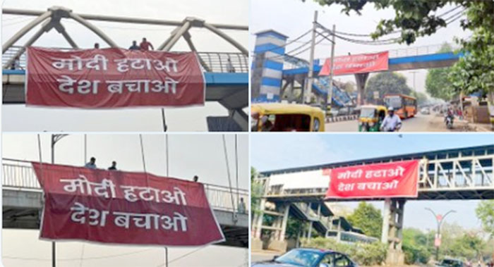नई दिल्ली । दिल्ली पुलिस ने राष्ट्रीय राजधानी में प्रधानमंत्री नरेन्द्र मोदी के खिलाफ पोस्टर लगाए जाने के मामले में कम से कम 100 प्राथमिकी दर्ज की हैं। अधिकारियों ने बुधवार को यह जानकारी दी। उन्होंने बताया कि दिल्ली के कई हिस्सों में दीवारों और खंभों पर ऐसे पोस्टर चिपके पाए गए थे जिन पर “मोदी हटाओ, देश बचाओ” लिखा था।