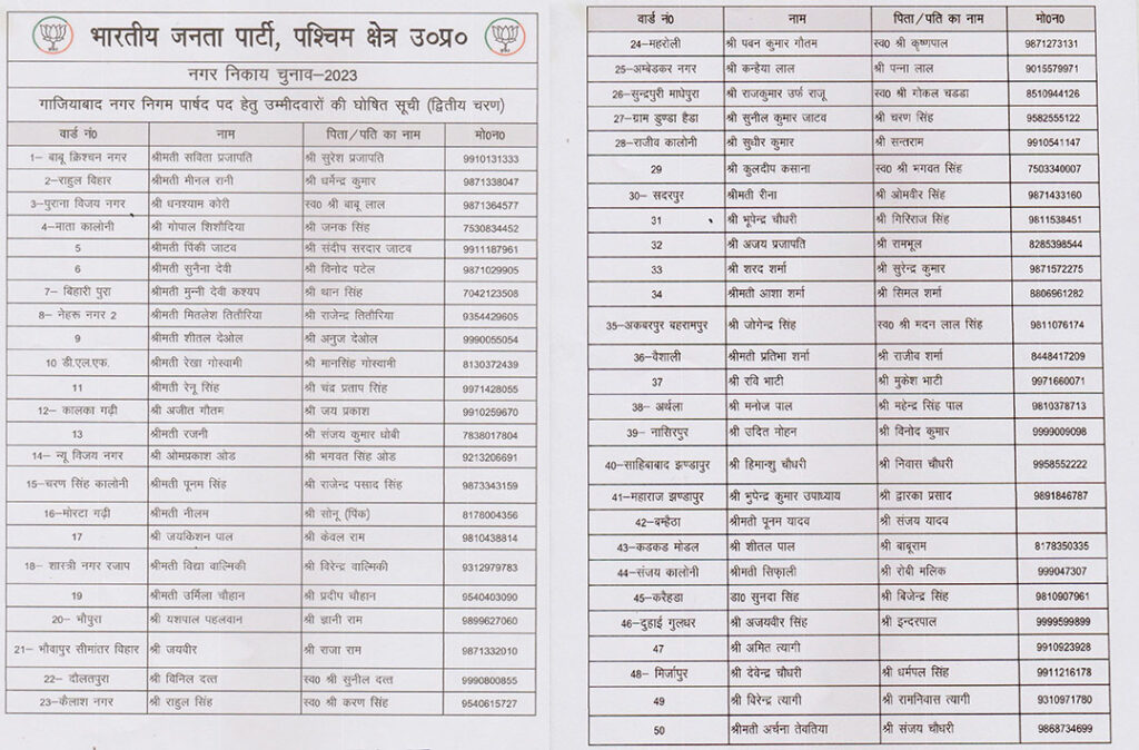पार्टी ने गाजियाबाद में सभी सौ सीटों की पार्षद उम्मीदवारों की सूची भी जारी कर दी है।