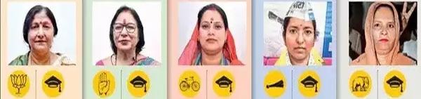 उन्होंने अपने शपथ पत्र में लिखा है कि उन्हे केवल अपना नाम लिखना आता है। कांग्रेस प्रत्याशी पुष्पा रावत एमए पढ़ी हैैं और भाजपा की सुनीता दयाल स्नातक है, तो सपा प्रत्याशी पूनम यादव 12वीं पास हैं।