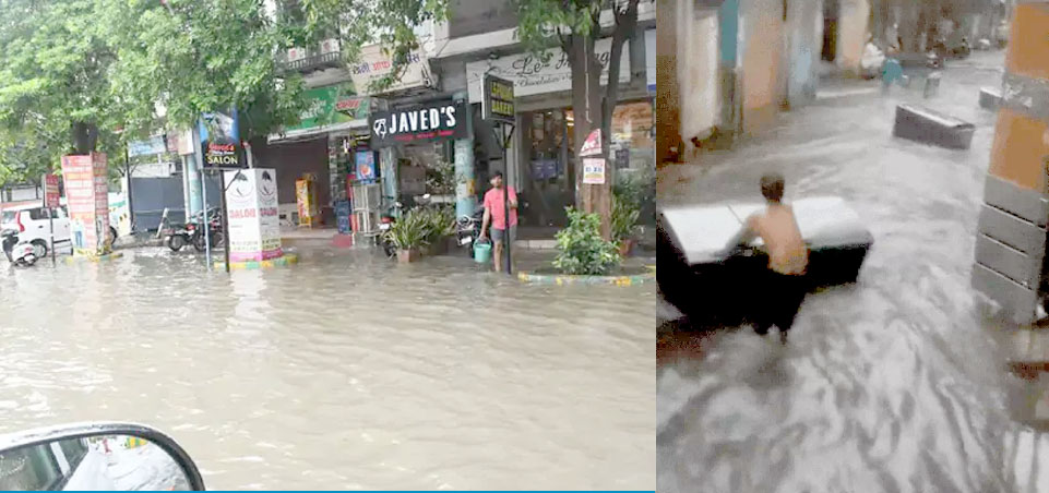 गाजियाबाद । गाजियाबाद में गुरूवार सुबह से सीजन की सबसे तेज बारिश हुई । स्थिति ये हो गई कि सुबह 9 बजे सड़कों पर अंधेरा छा गया। पहले काले बादल घुमड़कर आए, फिर तेज बारिश होने लगी। कैला भट्टा इलाके में तेज बारिश के चलते दुकान के बाहर रखे कई फ्रिज गलियों में बहने लगे।