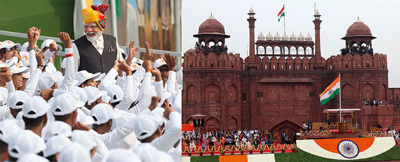 मोदी इस बार ऑफ-व्हाइट कुर्ता और काले रंग की जैकेट में नजर आए। उन्होंने जोधपुरी बांधनी प्रिंट साफा पहना। जिसमें पीला, हरा और लाल रंग था।