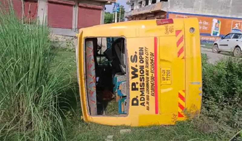 पुलिस ने बताया, ये हादसा गांव मीरपुर के पास हुआ। ये DPWS स्कूल की बस थी। मीरपुर गांव के पास बैक करते वक्त गड्ढे में चले जाने से बस पलट गई। हादसे के वक्त बस में करीब 20 बच्चे सवार थे। पुलिस के मुताबिक, सभी बच्चों की हालत खतरे से बाहर है। बस को क्रेन से सीधा करवा दिया गया है।