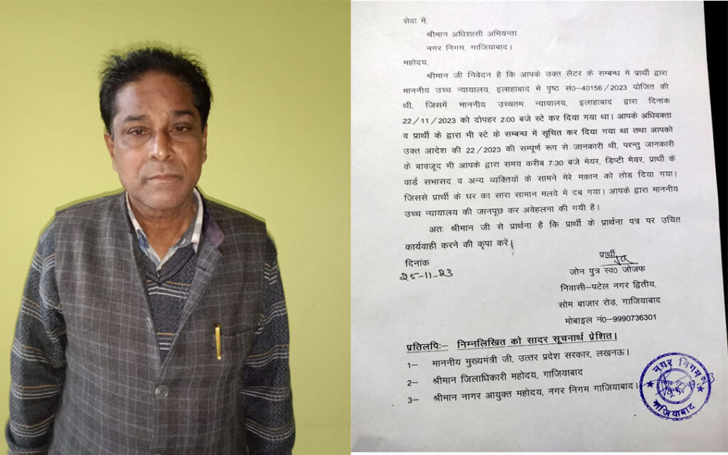 गाजियाबाद। उत्‍तर प्रदेश में अपराधियों और माफियाओं की अपराध से अर्जित की गई संपत्तियां नेस्‍तानाबूद करने के लिए मुख्‍यमंत्री योगी आदित्‍यनाथ ने बुलडोजर का जो फॉर्मूला शुरू किया था। बाद में ये फॉर्मूला पूरे देश में मॉडल बन गया। लेकिन अब इसी बुलडोजर फॉर्मूला को भगवा दल से जुड़े लोग अपने सियासी फायदे और हनक के लिए बदनाम करने में जुटे है। गाजियाबाद के पटेल नगर सेकेंड में पिछले 53 साल से एक मकान में रहने वाले परिवार को सूर्यास्‍त के बाद नगर निगम के बुलडोजर ने ध्‍वस्‍त कर बेघर कर दिया। जबकि उसी मकान के ध्‍वस्‍त करने के आदेश पर इलाहाबाद हाईकोर्ट ने स्थगनादेश जारी किया था। लेकिन निगम के अधिकारियों ने इस आदेश का मानने से इंकार कर दिया। हैरानी की बात ये है कि मकान के ध्‍वस्‍तीकरण को अपने सामने अंजाम दिलाने वाले मेयर व डिप्टी मेयर और इलाके की पार्षद अब मामले के तूल पकडने के बाद बैक फुट पर दिखाई दे रहे हैं।