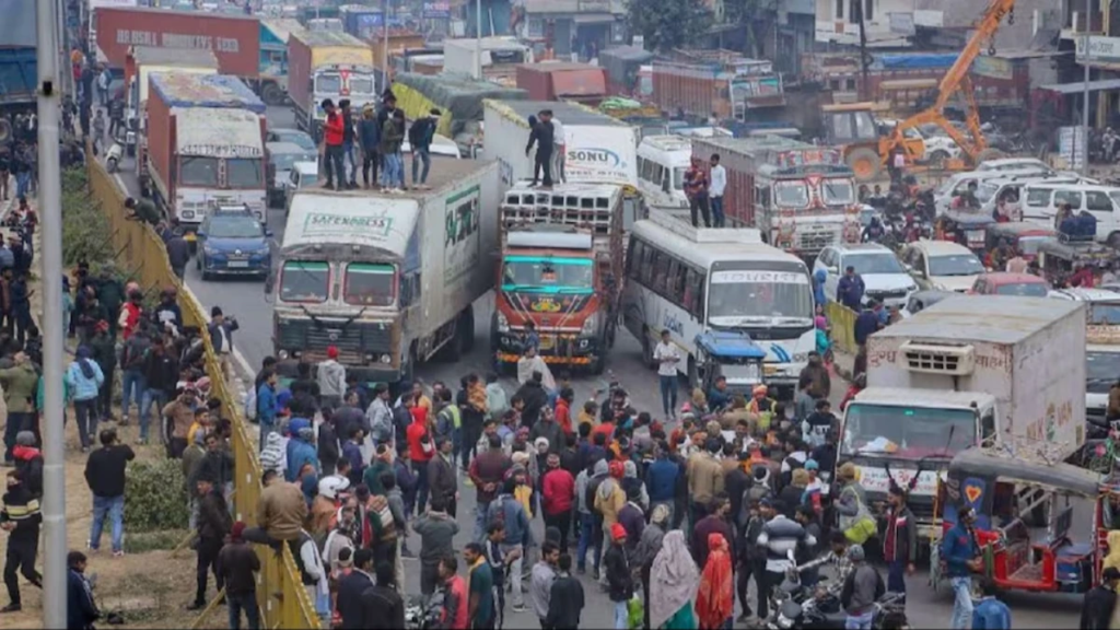 नई दिल्ली। देशभर में ट्रक, डंपर और बस चालक इस समय हड़ताल पर हैं. चालकों का विरोध केंद्र सरकार के नए हिट एंड रन कानून के खिलाफ है, जिसमें 10 साल की जेल और सात लाख रुपए के जुर्माने का प्रावधान है. इसके खिलाफ देशभर में चक्काजाम की स्थिति बन गई है.