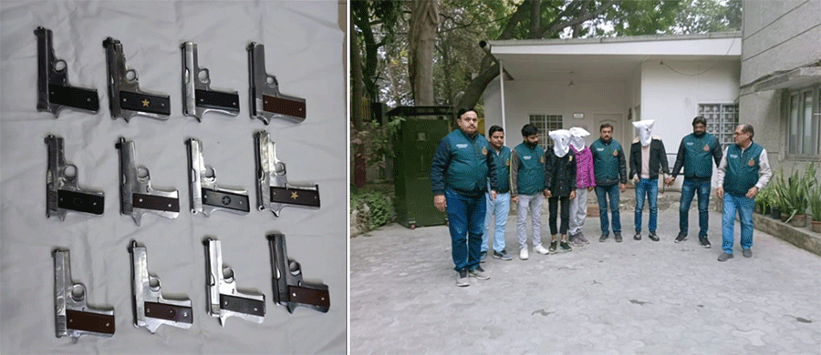 स्‍पेशल कमिश्‍नर एचजीएस धालीवाल ने बताया कि आगामी गणतंत्र दिवस समारोह 2024 के मद्देनजर सेंधवा, खरगोन, धार और एमपी के अन्य जिलों से खरीदकर दिल्ली/एनसीआर में आग्नेयास्त्रों की आपूर्ति करने वाले अवैध आग्नेयास्त्र तस्करों के खिलाफ स्पेशल सेल द्वारा एक विशेष अभियान शुरू किया गया है। इन सिंडिकेट के सदस्यों की पहचान के लिए ठोस प्रयास किये जा रहे हैं। तीन महीने से अधिक समय तक लगातार प्रयास करने के बाद  गुप्त सूचना प्राप्त हुई कि एमपी स्थित आग्नेयास्त्र सिंडिकेट का एक सदस्य पुष्पेंद्र सिंह, 7 जनवरी, 2024 को दोपहर के आसपास कालिंदी कुंज रोड, ओखला, दिल्ली में अपने सहयोगियों को आग्नेयास्त्र डिलीवरी के लिए आएगा। जिसके बाद  एक छापेमारी दल का गठन किया गया और घटनास्थल पर जाल बिछाया गया। पुष्पेंद्र सिंह कंधे पर बैग लटकाए घटनास्थल की ओर आता दिखा । लगभग पांच मिनट के बाद  दो लड़के  नईम और मनीष भाटी  वहां आए और पुष्पेंद्र सिंह ने अपने बैग से दो छोटे बैग निकाले और उन्हें एक-एक दिया। इसके बाद पुलिस टीम ने उन्हें घेर लिया और आत्मसमर्पण करने को कहा,  लेकिन उन्होंने मौके से भागने की कोशिश की। आख़िरकार तीनों आरोपियों को पुलिस पार्टी ने पकड़ लिया ।  तलाशी लेने पर पुष्पेंद्र सिंह के कब्जे से छह अत्याधुनिक पिस्तौलें बरामद हुईं, जबकि नईम के पास से चार पिस्तौलें बरामद हुईं और मनीष भाटी के बैग से दो सेमी-ऑटोमैटिक पिस्तौलें भी बरामद हुईं. उनके खिलाफ पीएस स्पेशल सेल में कानून के प्रासंगिक प्रावधानों के तहत मामला दर्ज किया गया और जांच की गई।