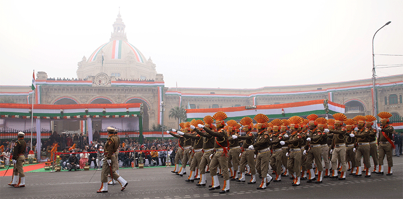 लखनऊ में परेड समारोह में शामिल हुए मुख्यमंत्री योगी आदित्यनाथ और राज्यपाल आनंदीबेन पटेल