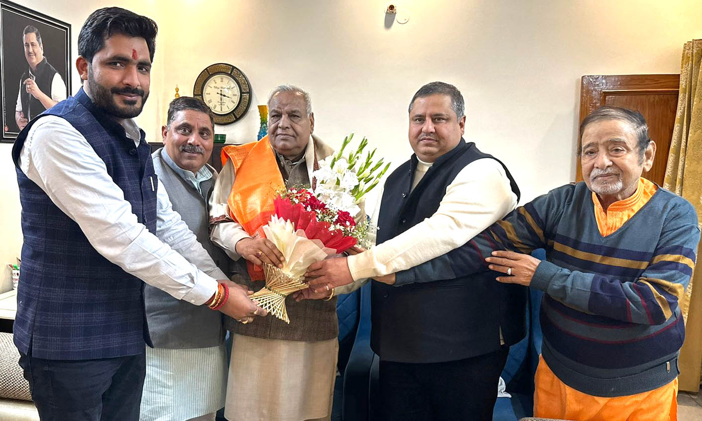 गाजियाबाद। उत्तर प्रदेश सरकार के पूर्व मंत्री और वर्तमान में कानपुर से बीजेपी सांसद सत्यदेव पचौरी शनिवार को विशेष खबर मीडिया समूह के नेहरू नगर स्थित प्रशासनिक कार्यालय पर पहुंचे और समूह संपादक विनीत कांत पाराशार से भेंट की। श्री पचौरी ने प्रधान संपादक के परिवार से भी मुलाकात कर उनकी कुशलक्षेम पूछी और उनके साथ भोजन किया।