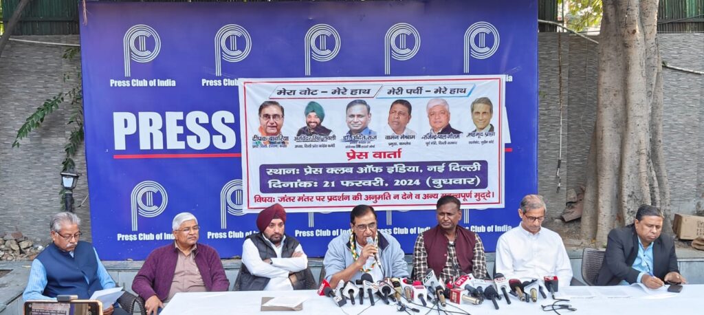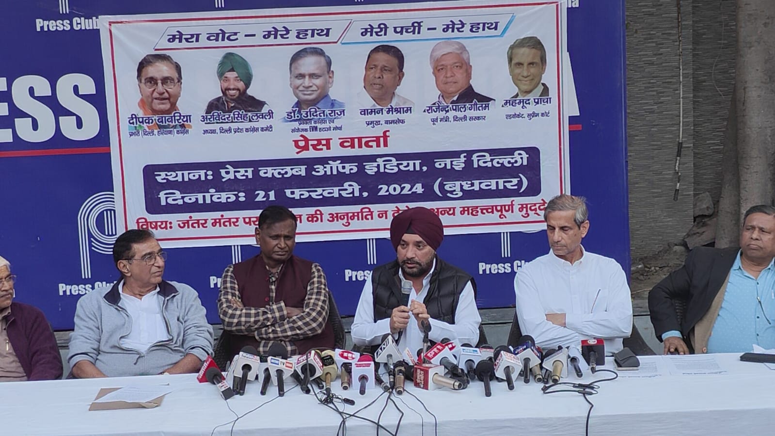 नई दिल्ली । दिल्ली प्रदेश कांग्रेस कमेटी के अध्यक्ष श्री अरविन्दर सिंह लवली ने प्रेस क्लब में आयोजित संवाददाता सम्मेलन में कहा कि भाजपा सरकार जनता का शांतिपूर्वक प्रदर्शन का अधिकार भी छीन रही है और आज केन्द्र में भाजपा की तानाशाही सरकार द्वारा लगातार देशवासियों को उनके लोकतांत्रिक अभिव्यक्ति के अधिकार के दबाने का प्रयास किया जा रहा है जबकि लोकतंत्र हर व्यक्ति को अपनी आवाज़ उठाने का अधिकार है । उन्होंने ईवीएम हटाओ मोर्चा के राष्ट्रीय संयोजक डा0 उदित राज द्वारा ईवीएम को बैन कर वापस बैलट पेपर से चुनाव कराने के लिए चलाए जा रहे अभियान को लेकर 22 फ़रवरी को जंतर मंतर पर प्रदर्शन की अनुमति भाजपा सरकार द्वारा निरस्त करने की कड़े शब्दों में निंदा की है।