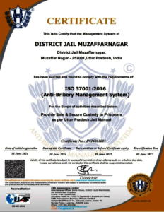 मुजफ्फरनगर जिला कारागार रिश्वत विरोधी मैनेजमेन्ट प्रमाण पत्र हासिल करने वाली देश की पहली जेल बनी