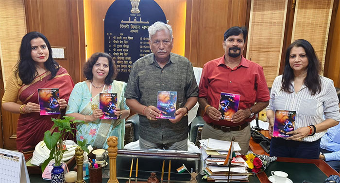 गाजियाबाद । गत दिवस विधानसभा दिल्ली में गाजियाबाद निवासी सेठ मुकन्द लाल इन्टर कालेज की सेवानिवृत्त शिक्षिका डॉक्टर निवेदिता शर्मा के भजन संग्रह “तुम आओ तो मोहन” का लोकार्पण विधानसभा अध्यक्ष रामनिवास गोयल द्वारा किया गया। इस अवसर पर सुश्री अनीता मुकीम गोयल, डॉक्टर अवधेश तिवारी, डॉक्टर गीतिका चतुर्वेदी उपस्थित रहे। रूस,यूक्रेन, पोलैंड मलेशिया, नेपाल आदि विदेशी डेलीगेट्स के सामने अध्यक्ष महोदय के अनुरोध पर डॉक्टर निवेदिता शर्मा, डॉक्टर अवधेश तिवारी और डॉक्टर गीतका चतुर्वेदी ने काव्य पाठ भी किया।