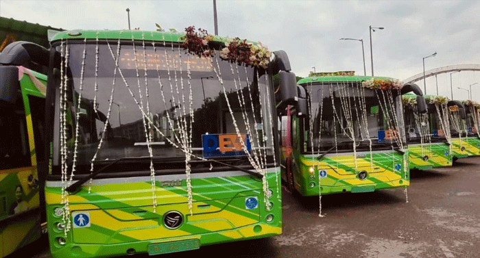 नई दिल्ली। दिल्ली सरकार की ‘देवी’ (दिल्ली इलेक्ट्रिक व्हीकल इंटरकनेक्टर) योजना के अंतर्गत 2 मई से 9 मीटर की इलेक्ट्रिक बसें सड़कों पर उतरी. दिल्ली के कुशक सेवा नगर स्थित कुशक नाला डीटीसी बस डिपो से केंद्रीय शिक्षा मंत्री धर्मेंद्र प्रधान, मुख्यमंत्री रेखा गुप्ता, सड़क परिवहन एवं राजमार्ग मंत्रालय के केंद्रीय राज्य मंत्री हर्ष मल्होत्रा और परिवहन मंत्री पंकज सिंह इन बसों को हरी झंडी दिखायी. पहले इन बसों का उद्घाटन 22 अप्रैल को निर्धारित किया गया था, लेकिन भारत सरकार द्वारा पोप फ्रांसिस के निधन पर घोषित राष्ट्रीय शोक के कारण कार्यक्रम को स्थगित कर दिया गया था.