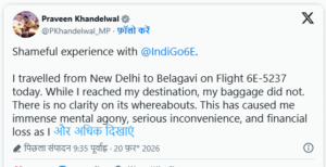 सांसद ने अपनी पोस्ट में लिखा कि यदि एक जनप्रतिनिधि के साथ ऐसा अनुभव हो सकता है, तो आम यात्रियों की स्थिति का अंदाजा लगाया जा सकता है। उन्होंने एयरलाइन की बैगेज मैनेजमेंट प्रणाली और परिचालन मानकों पर गंभीर सवाल उठाए।