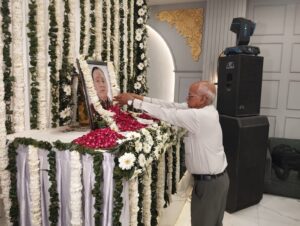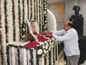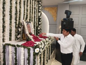 वोल्गा पैलेस में सोमवार को संपन्न हुई तेरहवी की रस्म और शोक सभा में परिवार के लोगों के साथ शहर के गणमान्य लोगों ने भाग लिया। जिनमें राजनीति, समाज सेवा से जुड़ी हस्तियों के साथ पुलिस, प्रशासन, समाजसेवा और धार्मिक संगठनों से जुÞड़े लोगों ने भाग लेकर गमगीन परिवार को सांत्वना दी।