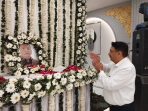 गाजियाबाद। राष्ट्रीय मीडिया समूह विशेष खबर के स्वामी और प्रधान संपादक विनीतकांत पाराशर के पिता स्वर्गीय श्री रजनीकांत पाराशर के रस्म पगड़ी संस्कार व शोक सभा में राजनीति और समाजसेवा से जुड़े लोगों ने बड़ी तादाद में भाग लिया। मालीवाड़ा रोड़ स्थित वोल्गा पैलेस, नेहरू नगर में संपन्न हुई शोक सभा में उत्तर प्रदेश के केबीनेट मंत्री सुनील शर्मा विशेष रूप से सम्मिलित हुए और पाराशर परिवार को सांत्वना देकर अपनी श्रृद्धाजंलि दी।