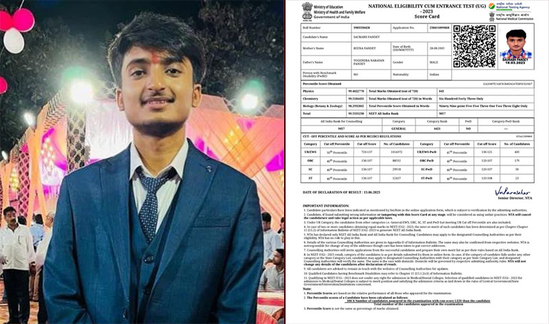 नीट की परीक्षा में सफल होकर सौरभ पाण्डेय ने बढ़ाया अवध जिले का मान, मिले 643 अंक