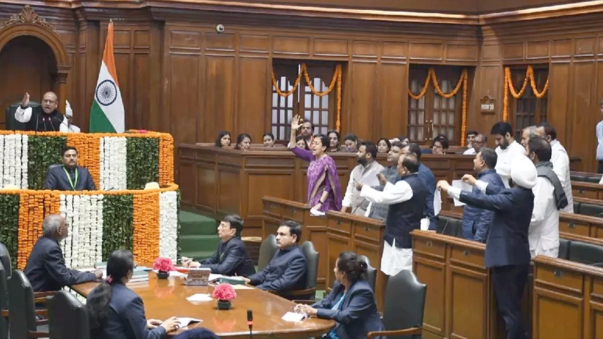 दिल्ली विधानसभा में जमकर हंगामा, BJP विधायक रविंद्र नेगी ने कैग रिपोर्ट के बहाने AAP पर बोला हमला