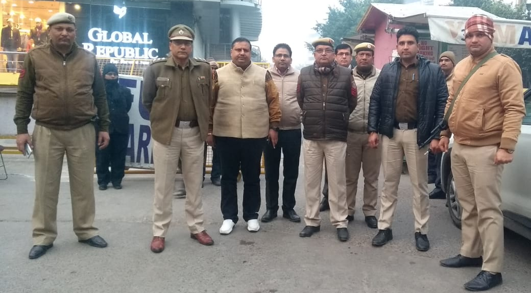 अलर्ट दिल्ली पुलिस: प्रीति विहार पुलिस ने प्रबंधकों के साथ लिया V3S मॉल की सुुरक्षा का जायजा