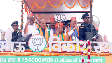 ‘विकास रथ’ पर साथ राजनाथ संग आदित्यनाथ, जनसमुद्र बोल उठा- अबकी बार, 400 पार